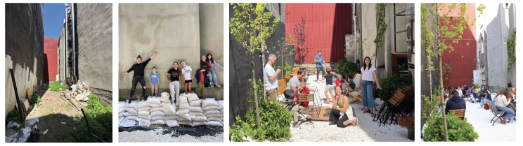 An empty run down lot was cleaned up and made into a little mini park where people can come sit, read and escape the busy city. Chairs and tables were added so people can bring their coffee and enjoy the outdoors. This has resulted in a more friendly and peaceful area for the nearby families to enjoy since they have very little green space.